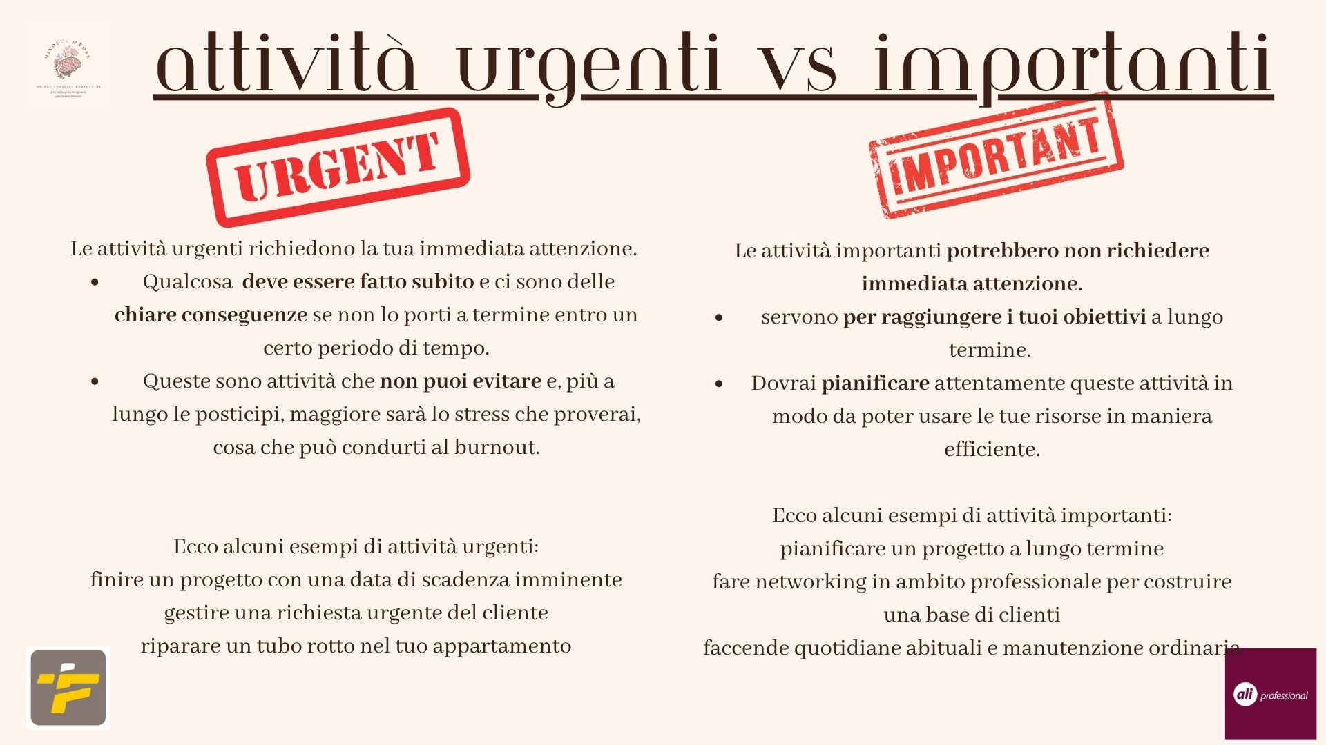 Passando in una riflessione scritta con la ruota della gestione del tempo, per aiutarci abbiamo utilizzato la matrice di eisenhower.
