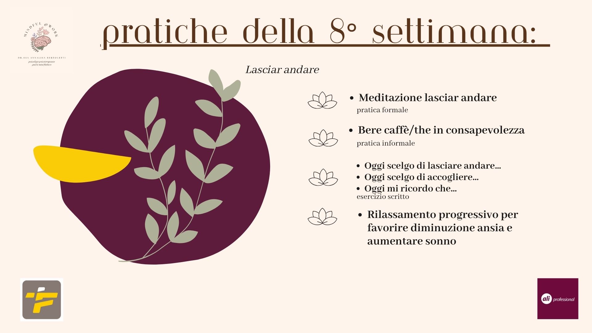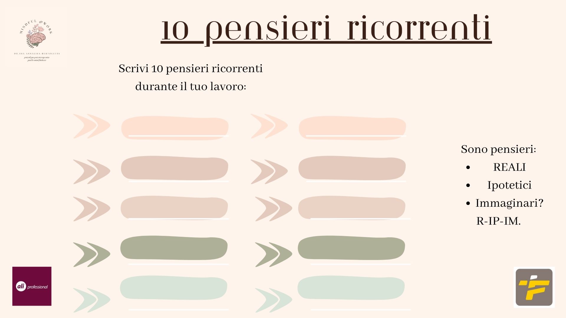 Nel quarto incontro abbiamo indagato l'osservare i pensieri. Trovi in allegato il video della monkey mind, con riflessioni scritte fatte insieme sui 10 pensieri ricorrenti e un'osservazione della nostra ruota della vita. Meditando sui nostri obiettivi.