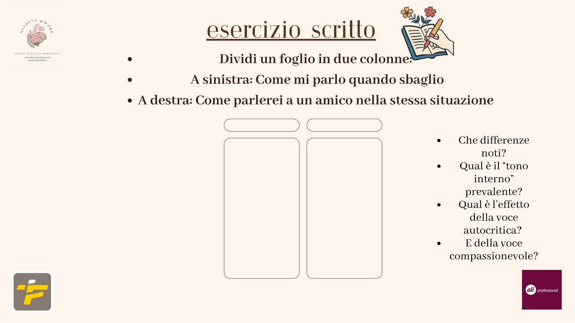 Nell'incontro di oggi abbiamo iniziato a parlare di autocompassione, o self compassion: la capacità di potersi trattare come un amico/ un'amica.