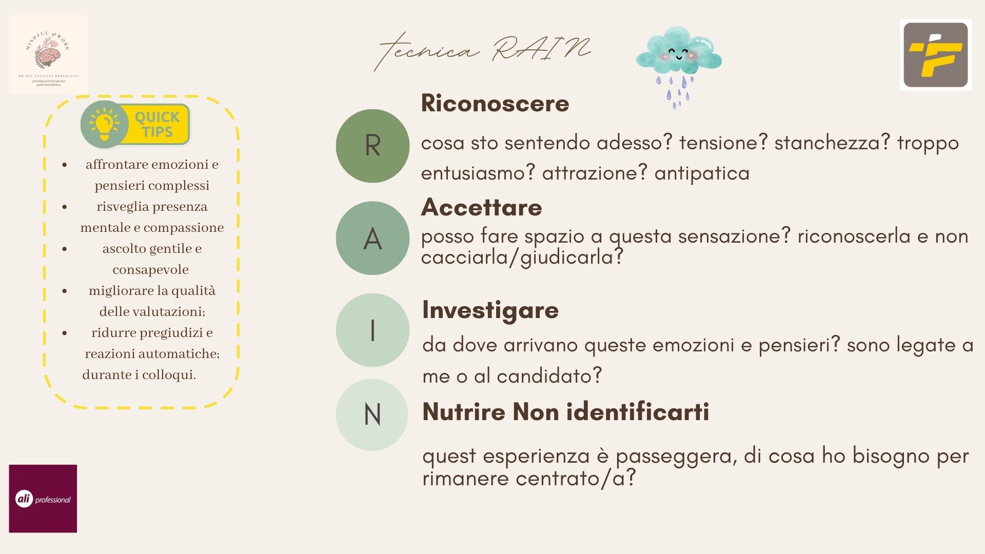 Integriamo con la pratica di R.A.I.N e S.T.O.P per incentivare la nostra auto osservazione.